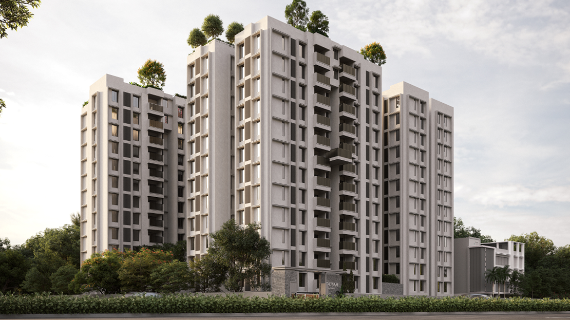 Tatsam is thoughtfully and precisely built to provide the highest level of utility, privacy, and comfort. The majority of apartments have no common walls and are three-sided open, providing plenty of natural light, cross ventilation, and solitude. Everyday living is made easy with big functional balconies, separate utility balconies in larger units, and spacious layouts with the majority of the rooms over 110 square feet.